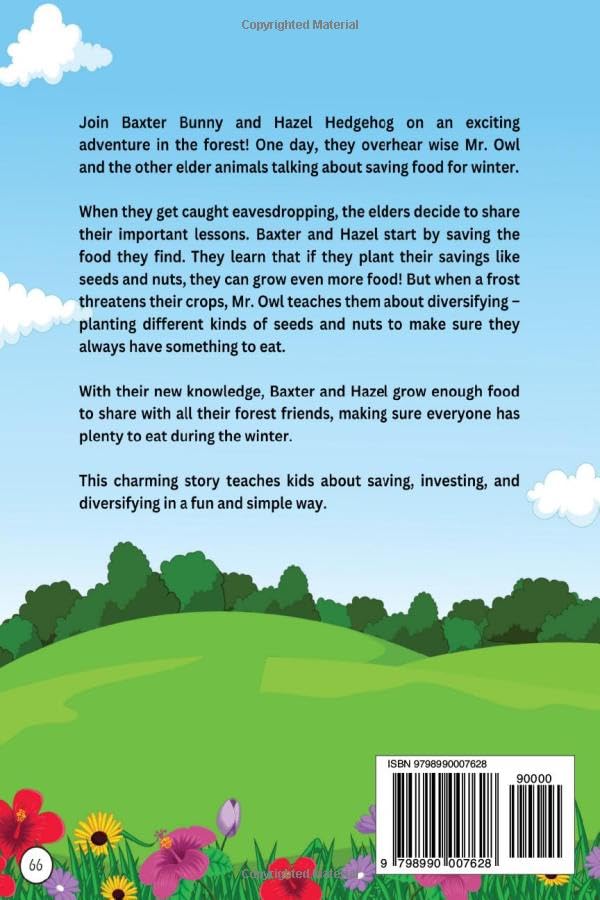 "Baxter Learns to Save" is a fun journey into the world of saving, investing, and diversifying. Its designed to empower children with the financial wisdom thats often missing from early education. Through the adventures of Baxter the Bunny and Hazel the Hedgehog, kids discover the importance of saving money and the magic of growing it over time. This story proves that even young minds can grasp the basics of financial literacy when it's taught in a playful, engaging way. Guided by the wise Mr. Owl, Baxter and Hazel explore the forest's treasures and learn how to manage their resources wisely. As their journey unfolds, the friends discover how to plan for the future, share with others, and make smart financial choices. Using nature as a metaphor, children begin to understand the value of work, patience, and responsibility with money. The book helps shape healthy money habits early on, laying a strong foundation for a stable and secure future. More than just a story, its a practical step toward raising financially confident and independent kids. By making complex concepts fun and simple, the book encourages kids to learn and apply financial lessons in real life. "Baxter Learns to Save" is a valuable resource for parents and educators who want to teach children the power of smart money management.